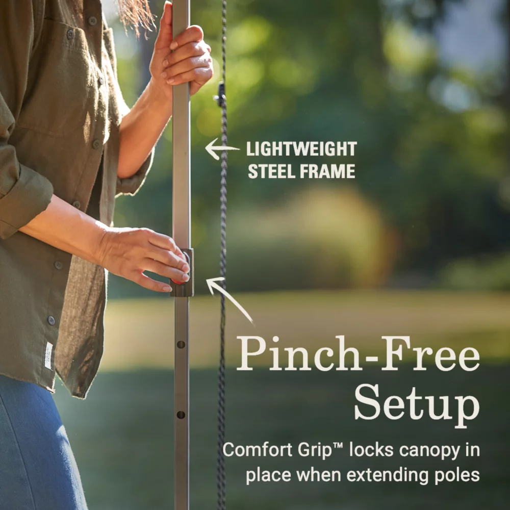 • PINCH-FREE SETUP & TAKEDOWN: Comfort Grip™ features easy-to-use buttons for locking the poles in place when setting up or taking down