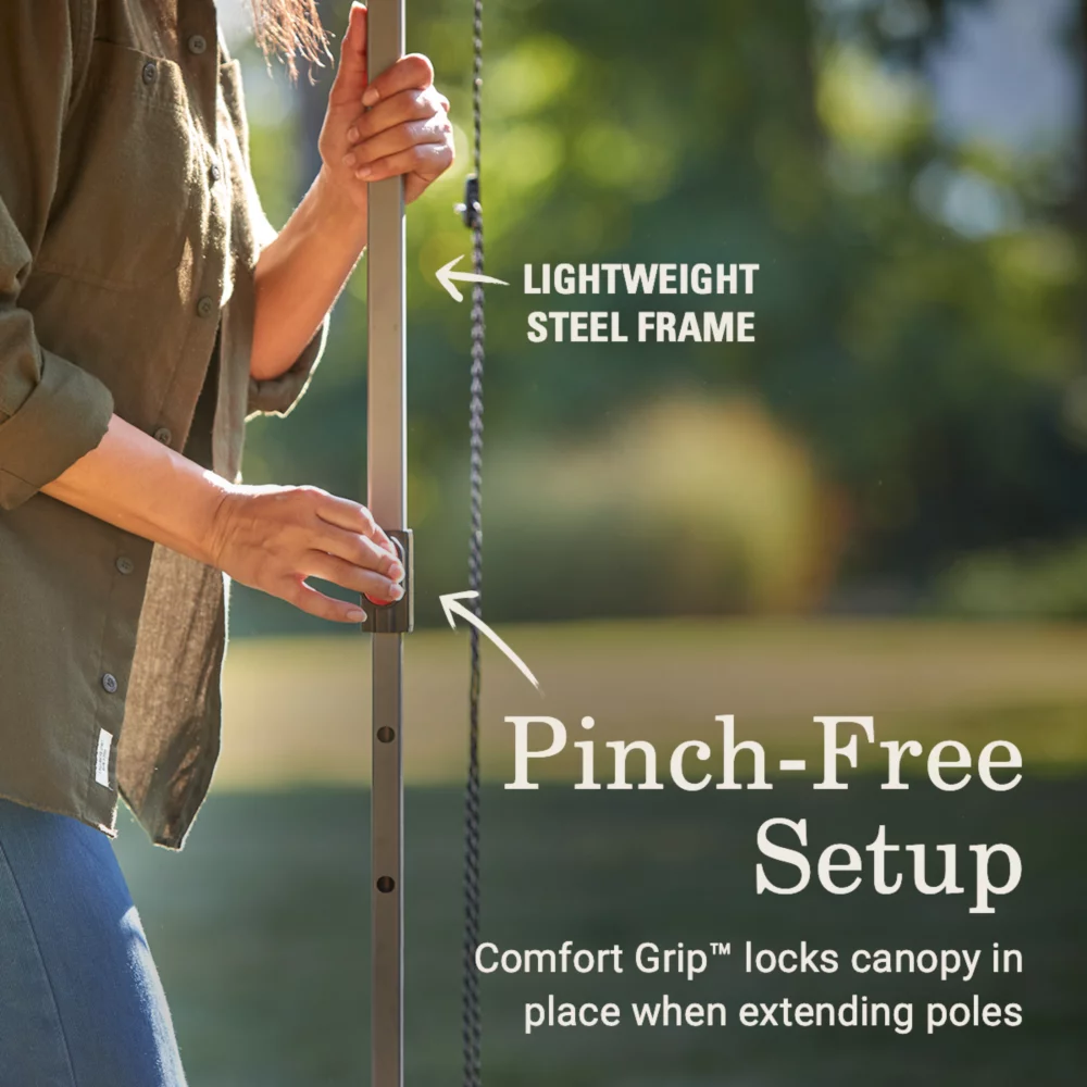- PINCH-FREE SETUP & TAKEDOWN: Comfort Grip™ features easy-to-use buttons for locking the poles in place when setting up or taking down