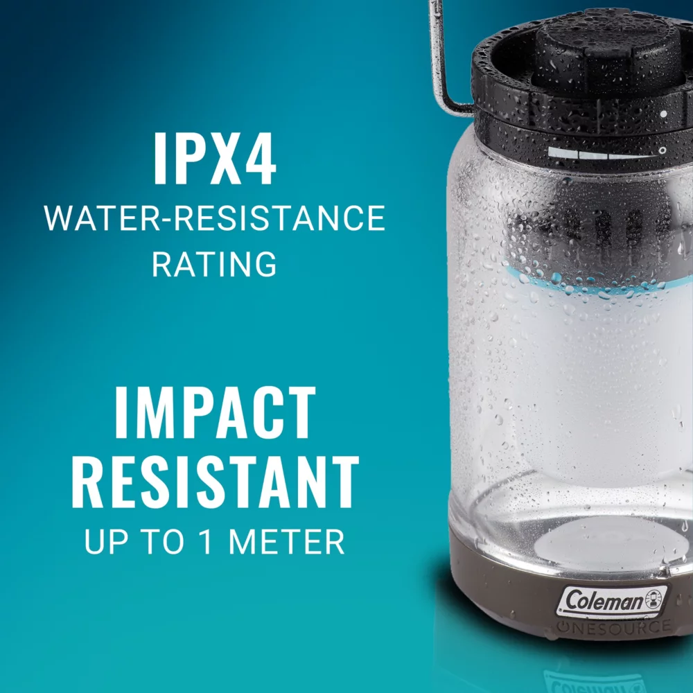Part of a system that powers outdoor gear, the Coleman® OneSource™ 600 Lumens LED Lantern lights the night up to 3 hours (high) or 100 hours (low) on a full charge of the lithium-ion battery (included). For your convenience, the battery can be recharged from wall outlets, vehicles, other OneSource batteries, or universal power packs with the included USB cord. Bonus? The OneSource battery helps eliminate the need for multiple power sources by letting you charge external devices, like smartphones or tablets (not included), through a USB port, even while powering gear. One system, one source, power anywhere!